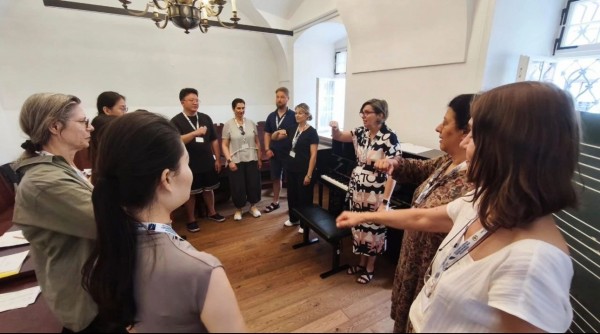 研修班首周以柯达伊教学法为核心开展系统课程。中国代表团成员先经严格考级与测试评级,精准分配至不同级别班级,沉浸式学习指挥课、视唱练耳课、教法课、合唱课、练声课等核心课程。授课教师均为柯达伊研究所明星教师,包括 Renáta Darázs、Dávid Farkasházi、Borbála Szirányi 等,他们凭借深厚专业造诣与国际化视野,为学员开拓音乐教育新视角。通过持续体验与实践,代表团成员深刻领会柯达伊教学法核心理念及应用策略,夯实专业基础。