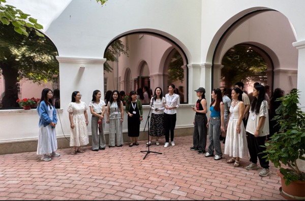 中国团队在柯达伊研究所极具欧洲人文主义气息的中庭进行排练